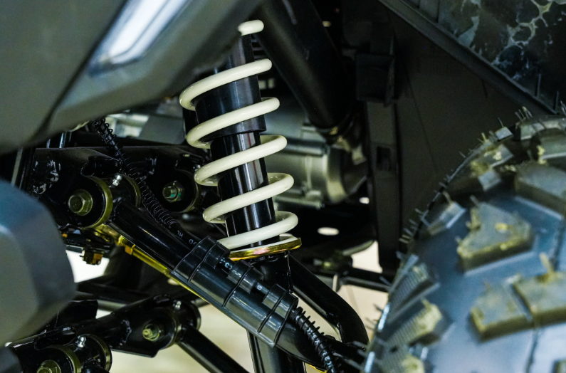 Передняя маятниковая (рычажная) подвеска обеспечивает отличную амортизацию, что особенно важно на неровных и сложных маршрутах. С дорожным просветом в 150 мм и высотой по сидению 800 мм, квадроцикл подходит для пользователей ростом от 150 см, что делает его доступным для широкой аудитории.