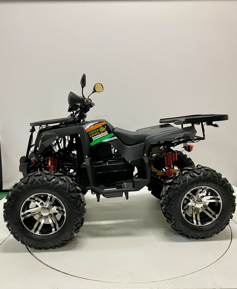 Колеса с дисками R12 и шинами размером 25x8-12 (передние) и 25x10-12 (задние) гарантируют отличное сцепление с дорогой. Высота сиденья составляет 80 см, что обеспечивает удобное размещение для водителя и пассажира. Дорожный просвет в 200 мм позволяет уверенно преодолевать препятствия и неровности на пути.