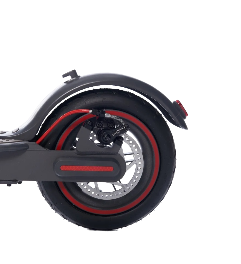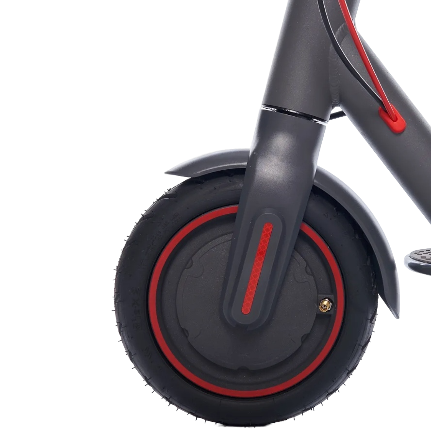 Колеса диаметром 8.5 дюймов имеют перфорированную конструкцию, которая снижает общий вес самоката и придает ему современный стильный внешний вид. Перфорация не влияет на прочностные характеристики колес и обеспечивает сохранение всех эксплуатационных свойств. Двухколесная конфигурация гарантирует устойчивость и хорошую управляемость в городском потоке.