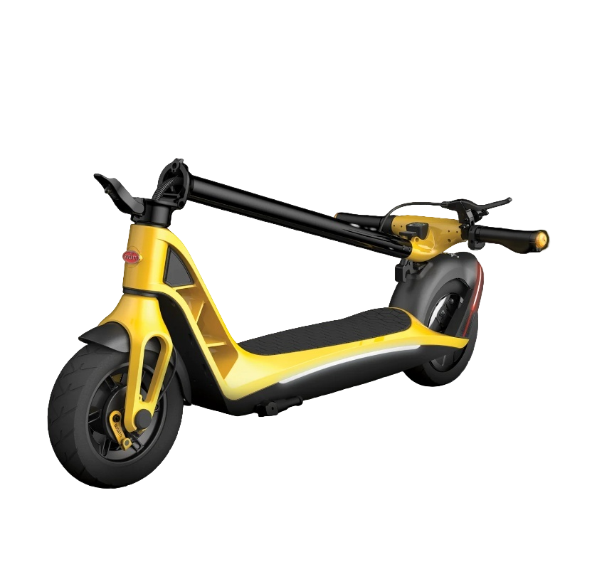 Электросамокат Griffin H10 оснащен складным механизмом, который позволяет быстро уменьшить габариты устройства для удобного хранения в квартире, офисе или перевозки в общественном транспорте. Вес самоката составляет 21.5 кг, что обеспечивает устойчивость при движении и приемлемую массу для переноски в сложенном состоянии. Дорожный просвет 8.5 см защищает нижнюю часть корпуса от контакта с бордюрами и неровностями дорожного покрытия.