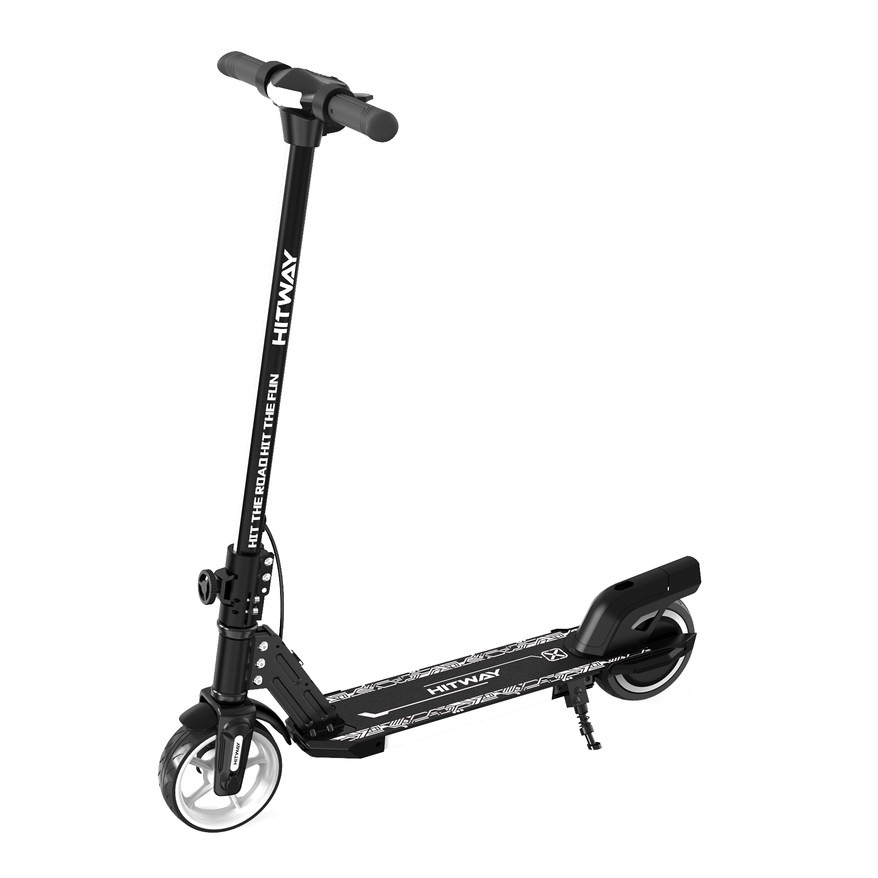 HITWAY W12 предлагает ряд дополнительных функций, таких как Bluetooth, который позволяет подключать устройства для прослушивания музыки во время поездки. Откидной переключатель делает управление самокатом более удобным, а боковая подставка позволяет легко парковать его в любом месте. Отсутствие сиденья делает конструкцию более легкой и маневренной.