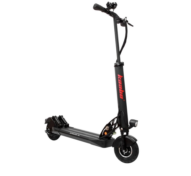 - Управляемость и комфорт: Самокат оснащен передней и задней пружинной подвеской, что обеспечивает плавный и комфортный ход даже на неровных дорогах.