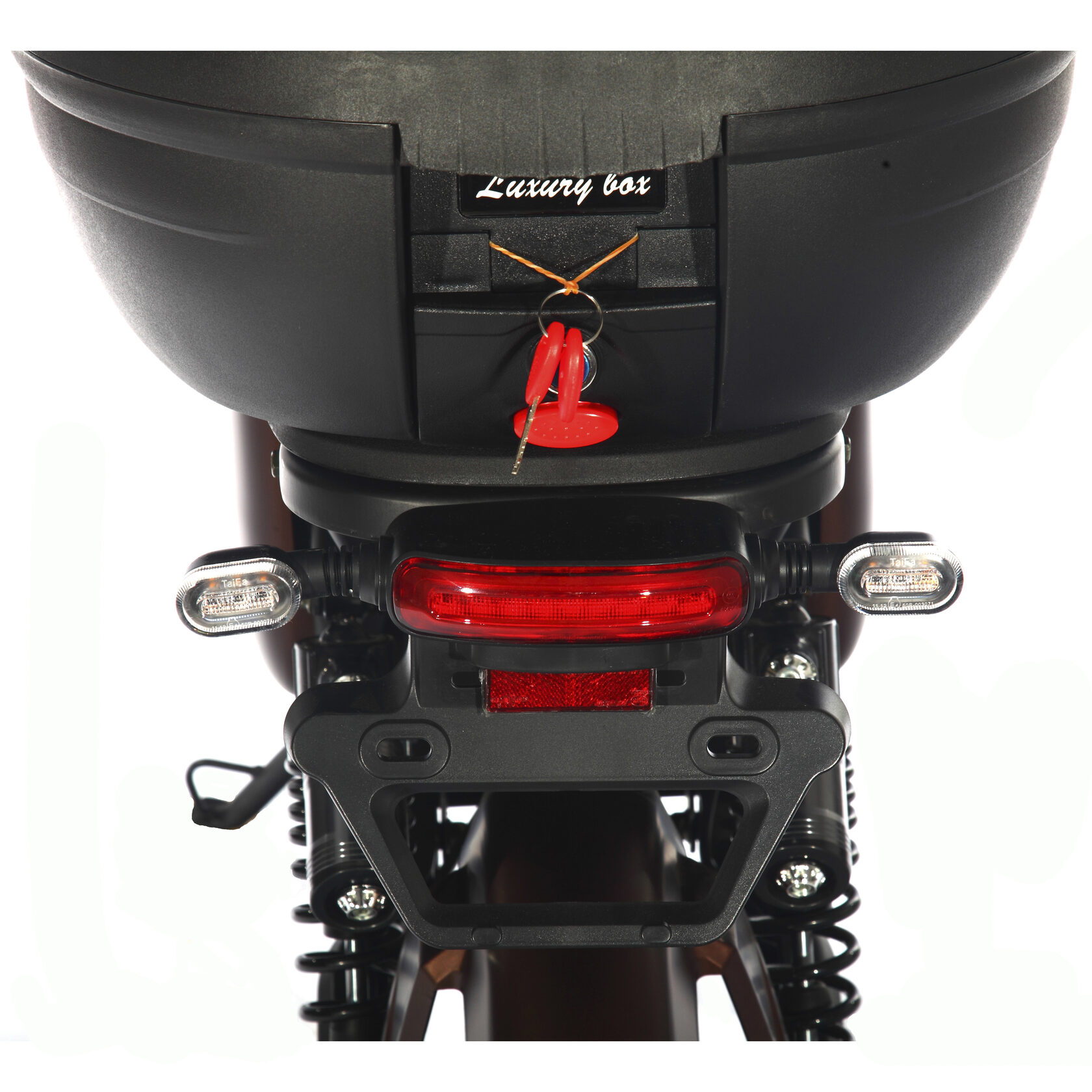 LED-дисплей с показанием вольтажа позволяет легко отслеживать состояние батареи, а встроенные передние и задние LED-фары, а также поворотники, обеспечивают безопасность на дороге в темное время суток.