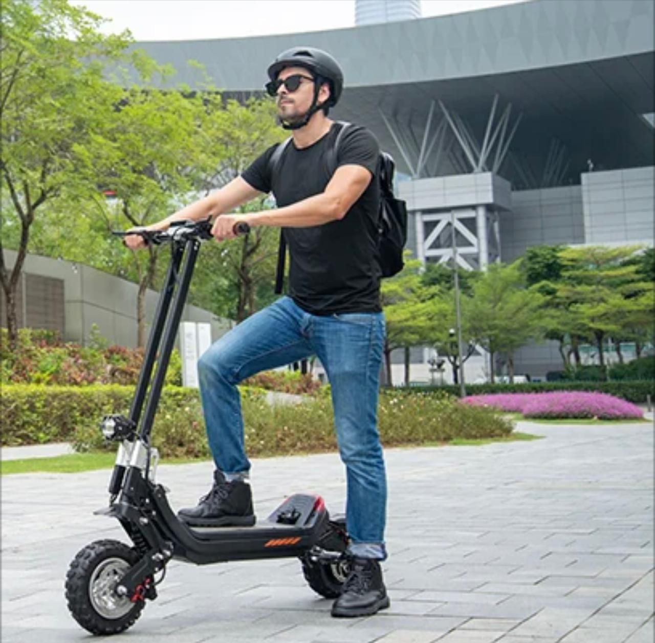 Самокат может преодолевать уклоны в 15 градусов. Передние и задние амортизаторы обеспечивают плавную комфортную езду по любым неровностям, включая камни, ветки в лесополосе. Тщательно продуманная подвеска способствует распределению ударных нагрузок, продлевая срок службы основных компонентов электротранспорта.