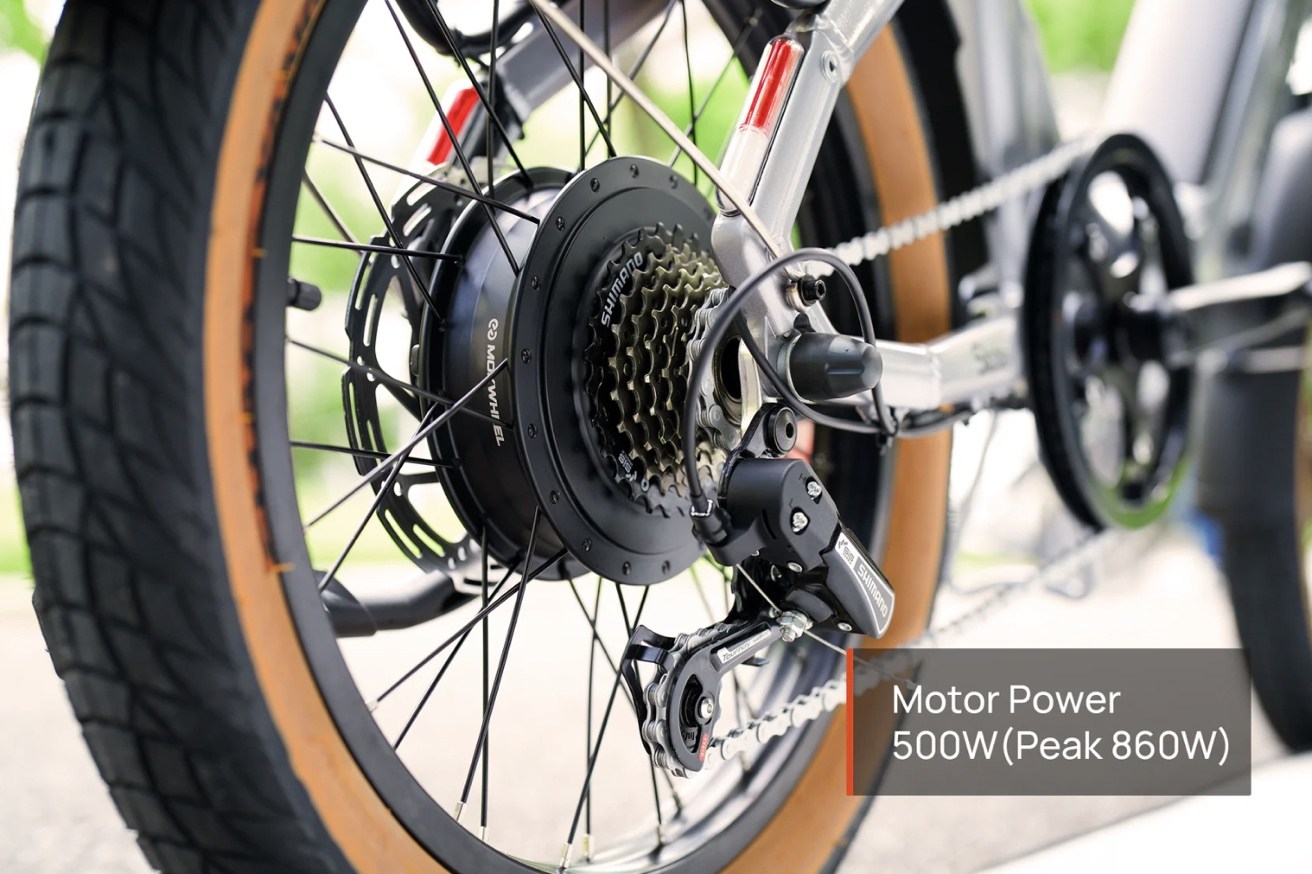 Электровелосипед MOKWHEEL SLATE оснащён двигателем мощностью 500 Вт, который обеспечивает отличную динамику и уверенное преодоление подъёмов любой крутизны. Максимальная скорость достигает 40 км/ч — этого достаточно для комфортного передвижения по городу и загородным маршрутам. Задний привод гарантирует надёжное сцепление с дорогой и устойчивость даже на скользких покрытиях. Двигатель работает плавно и без рывков, что делает управление максимально комфортным и предсказуемым.