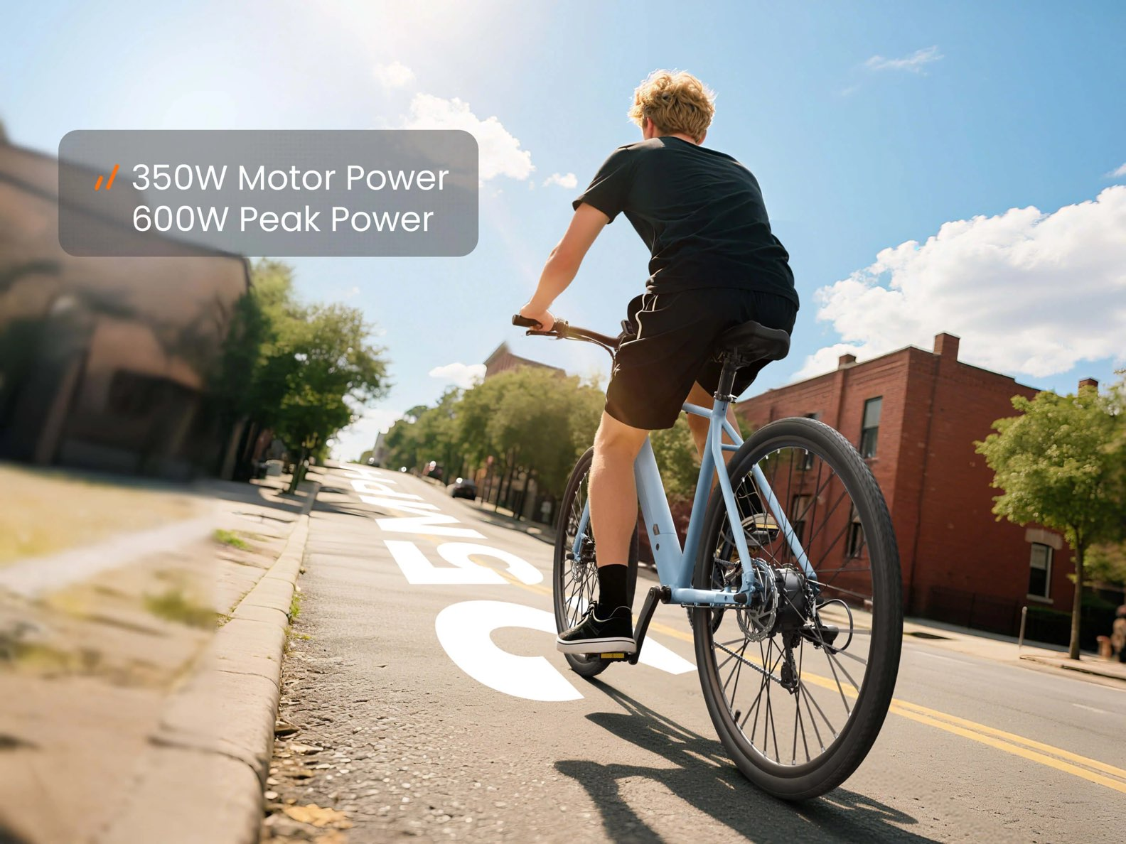 Электровелосипед оснащён двигателем мощностью 350 Вт, который обеспечивает плавный разгон и уверенное движение со скоростью до 40 км/ч. Этого достаточно для комфортного передвижения по городу, обгона медленного транспорта и своевременного прибытия в нужное место. Задний привод гарантирует хорошее сцепление с дорогой и устойчивость при старте с места, а также при движении по мокрому асфальту или гравию. Двигатель работает тихо и не создаёт лишнего шума, что особенно ценно при поездках ранним утром или поздним вечером.