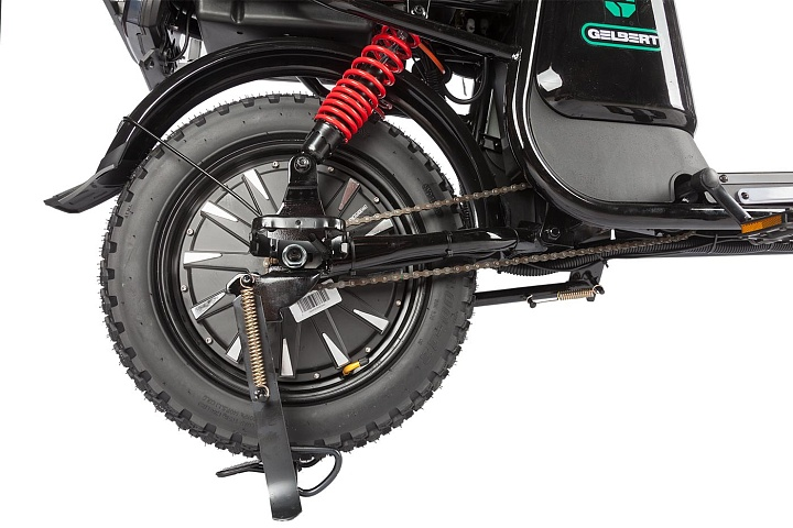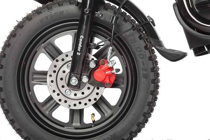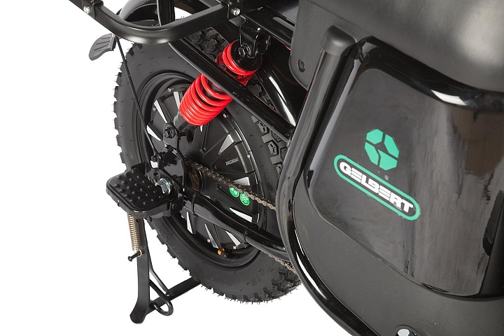 Gelbert Condor 2 оснащен энергичным электромотором мощностью 240 Вт и напряжением 60 В, что обеспечивает уверенный разгон и плавную езду. Диаметр колес составляет 16 дюймов с шириной 3 дюйма, что гарантирует отличное сцепление и комфорт даже на неровных дорогах.