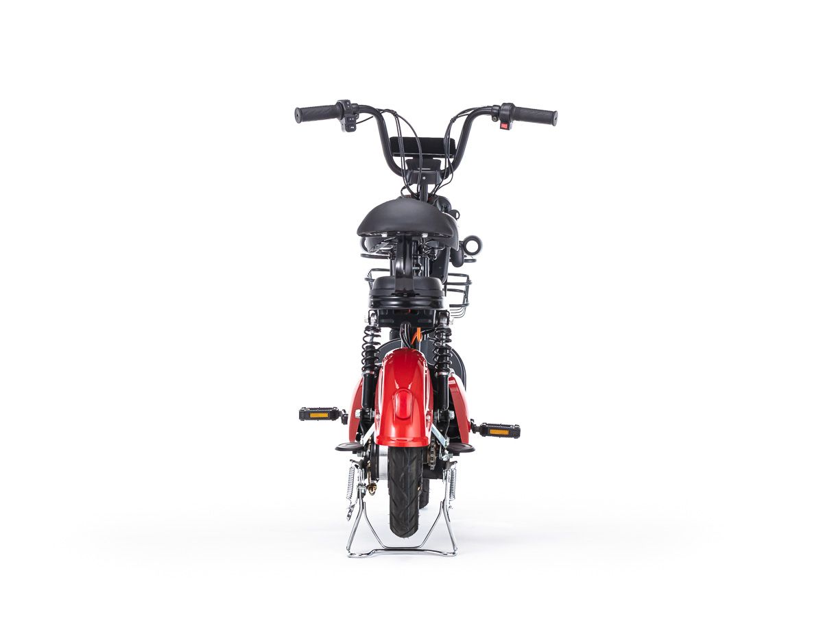 Это современный электромопед с бесщеточным двигателем мощностью 500(250) ватт. Может проехать в смешанном режиме до 35 км, а в идеальных условиях — до 70 км.