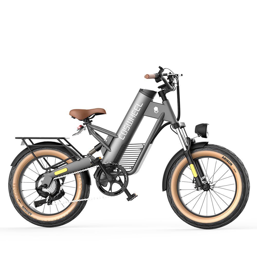 Электровелосипед COSWHEEL M20 выделяется своим стильным и современным дизайном. Серый цвет придает ему элегантный вид, который привлечет внимание на дороге. Этот велосипед подходит как для городских поездок, так и для активного отдыха на природе, сочетая в себе эстетику и функциональность.