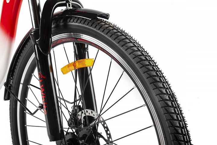 - колёса 26" на двойных ободах чёрного цвета с декалями в цвет рамы;