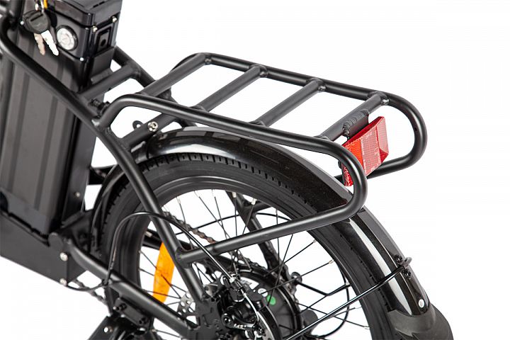 Модель предлагается в двух цветовых вариантах. Кроме всего прочего, на электровелосипеде предусмотрен прочный металлический багажник, так что перевозка рюкзака с рабочими принадлежностями или личными вещами никогда не будет для вас проблемой!