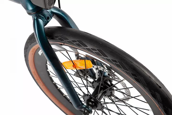 Складной электровелосипед Sporto построен на алюминиевой раме с изящными 20-дюймовыми колёсами на высоких стильных спортивных ободах с узкими сликовыми покрышками, имеющими потрясающий накат, выглядит максимально современно и очень стильно!