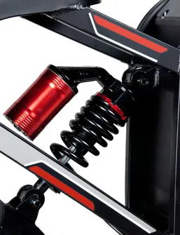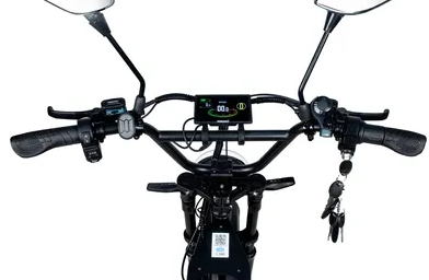 Электровелосипед оснащен подседельным амортизатором и пружинно-эластомерной вилкой, что улучшает комфорт при езде по неровным поверхностям. Половинчатая ручка газа делает управление более интуитивным, а наличие зеркал заднего вида и мощной фары повышает безопасность при передвижении по городским улицам.