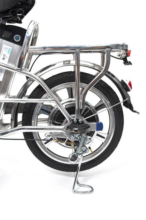 - Мотор-колесо на 500 Вт позволяет развивать скорость до 45 км/ч.