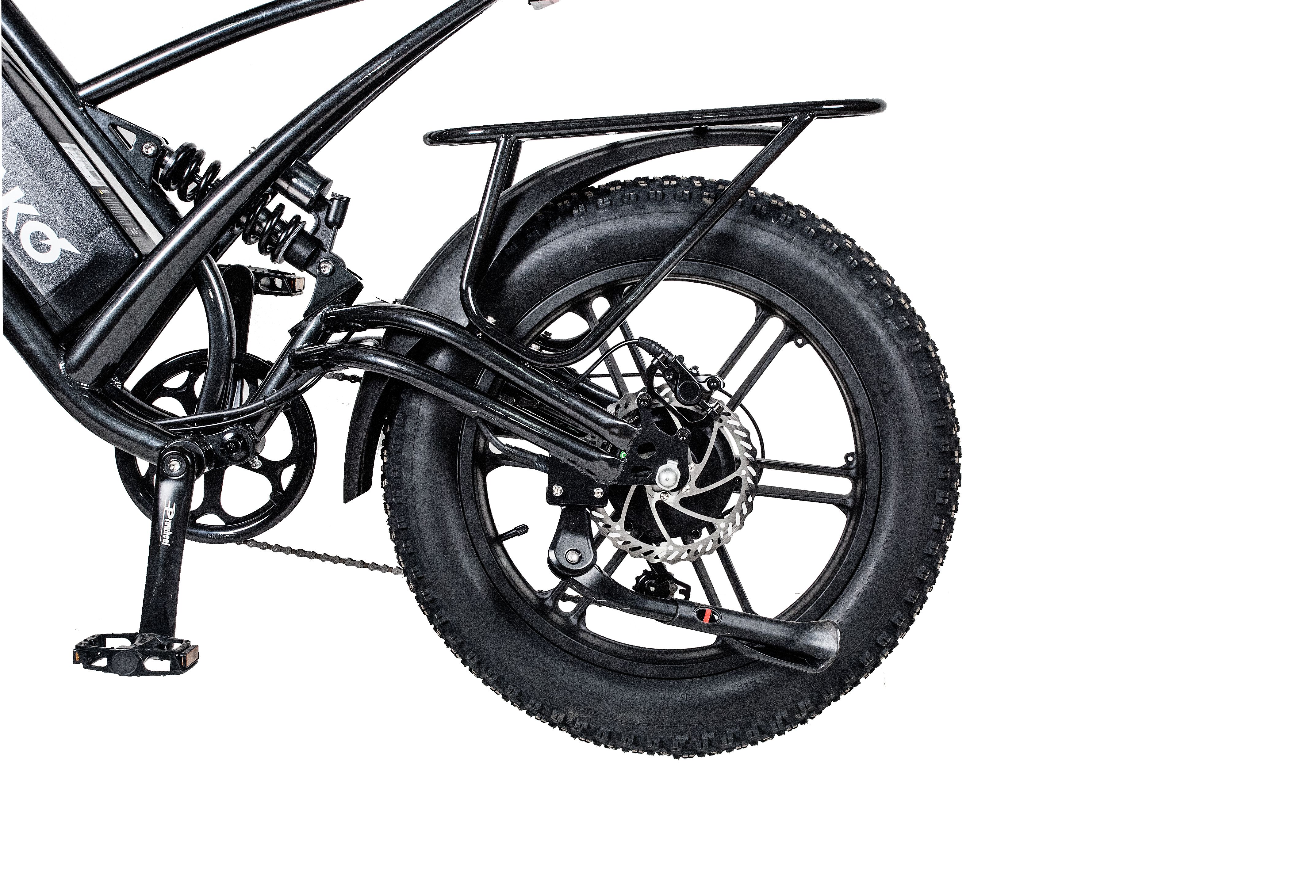 Электрофэтбайк имеет уникальные особенности, которые выделяют его среди конкурентов. Мощный мотор на 1600 Вт позволяет легко преодолевать крутые подъемы и достигать максимальной скорости 55 км/ч. Вместительный багажник в задней части велосипеда предоставляет возможность перевозить пассажиров или вещи, что добавляет функциональности.