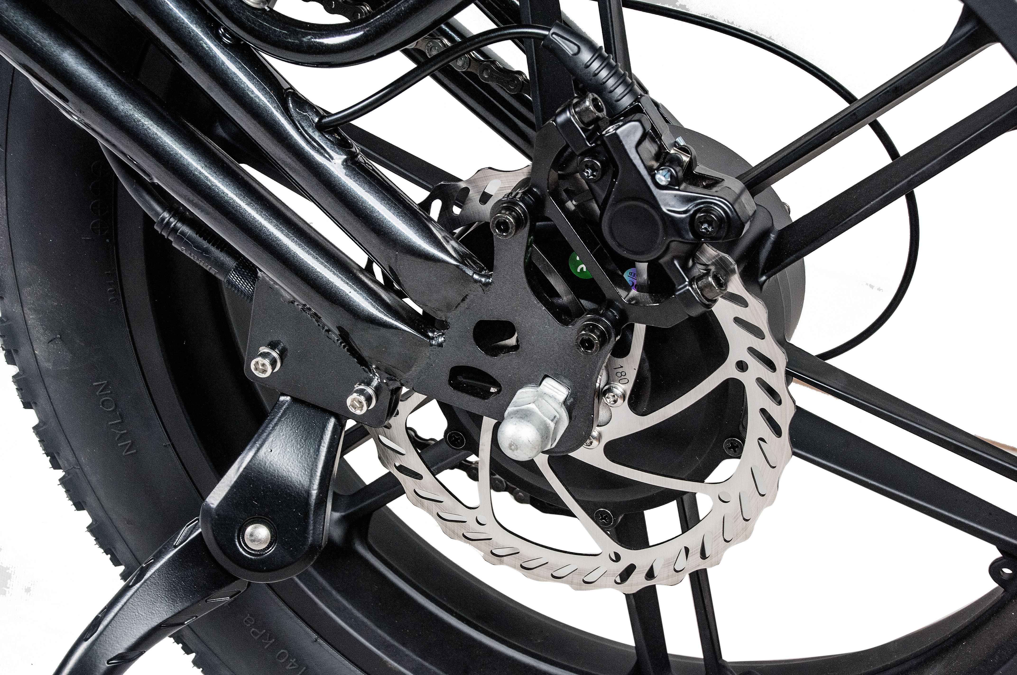 Электрофэтбайк Minako FOX 15Ah оснащен дисковыми гидравлическими тормозами как спереди, так и сзади, что обеспечивает надежную и безопасную остановку на любых поверхностях. Это особенно важно для городских условий, где могут возникать непредвиденные ситуации.