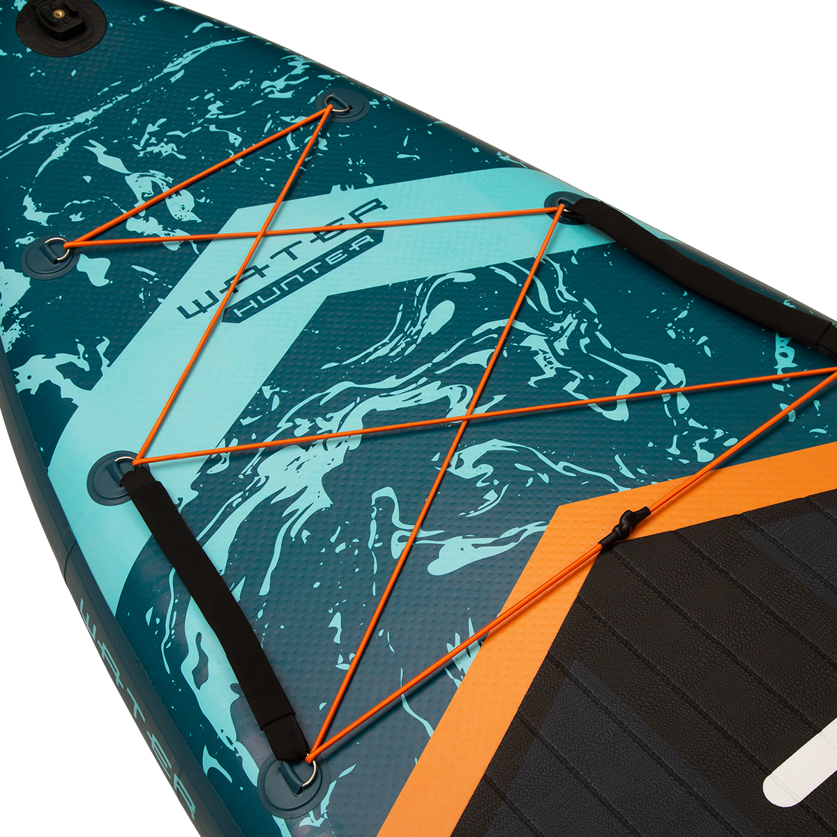 Толщина доски 15 сантиметров (6 дюймов) является стандартной для надувных сапбордов и обеспечивает достаточный запас плавучести. Увеличенная ширина и длина позволяют равномерно распределять нагрузку по поверхности доски, сохраняя устойчивость даже при смещении центра тяжести. Форма корпуса оптимизирована для движения как по прямой, так и для выполнения поворотов среднего радиуса.