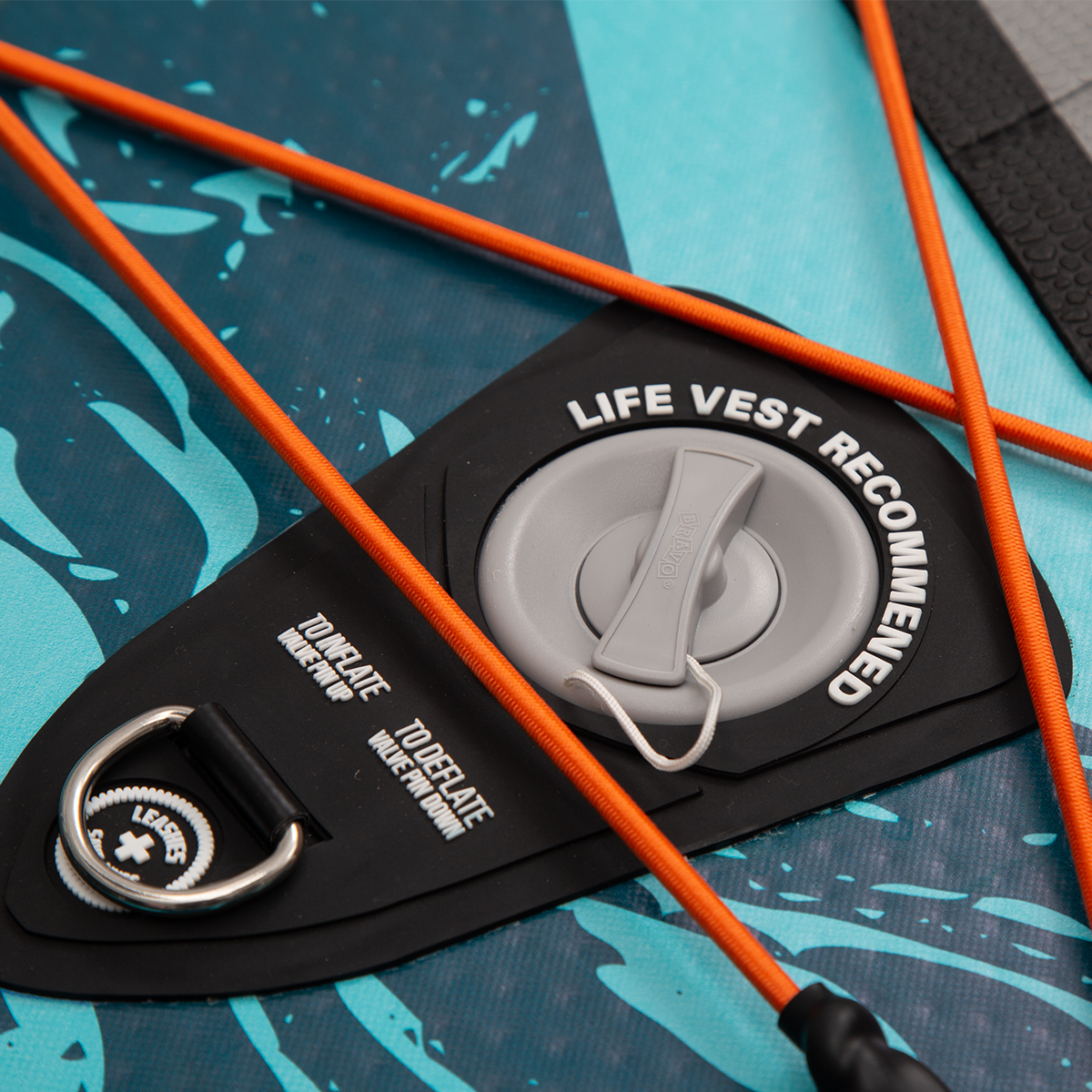 Ручной насос высокого давления с манометром выполнен по двухтактной схеме, обеспечивающей подачу воздуха при движении рукоятки в обоих направлениях. Это сокращает время накачки доски до рабочего давления и снижает физическую нагрузку на пользователя. Встроенный манометр позволяет контролировать текущее давление и не превышать максимально допустимое значение в 20 PSI.